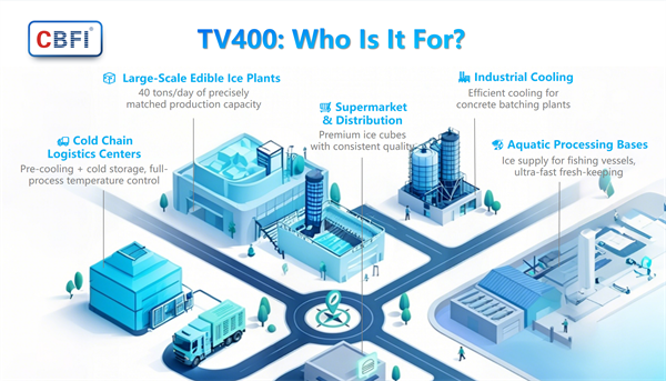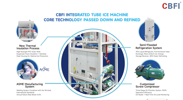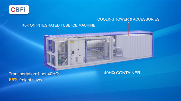 With 22 years of technological accumulation, CBFI’s TV400 integrated tube ice machine achieves breakthroughs in space, speed, cost, and technology, making ice-making more efficient and more cost-efficient.